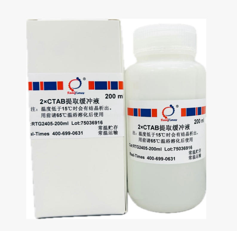 CTAB (hexadecyltrimethylammonium bromide,十六烷基三甲基溴化銨),是一種陽離子去污劑,具有從低離子強(qiáng)度溶液中沉淀核酸與酸性多聚糖的特性。在高離子強(qiáng)度的溶液中(>0.7 M NaCl) CTAB與蛋白質(zhì)和多聚糖形成復(fù)合物而不沉淀核酸。通過有機(jī)溶劑抽提,去除蛋白、多糖、酚類等雜質(zhì)后加入醇(乙醇或異丙醇)沉淀即可使核酸分離出來。