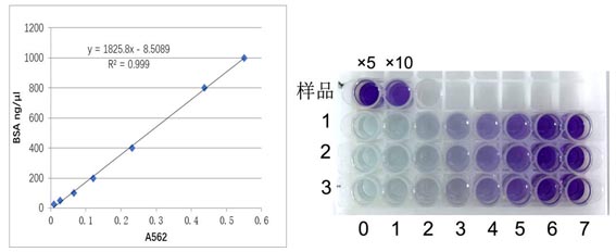 BSA 標(biāo)準(zhǔn)品樣本個(gè)數(shù)為8個(gè),復(fù)孔數(shù)3個(gè);待測樣本個(gè)數(shù)2個(gè),復(fù)孔數(shù)2個(gè)。